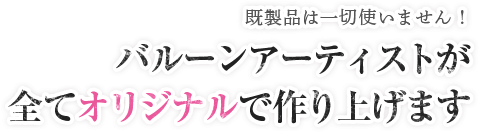 10年以上の活動、そして全国大会優勝の他の数々の実績があるプロのバルーンアーティストが、1つ1つ丁寧にバルーンアートを制作しております。